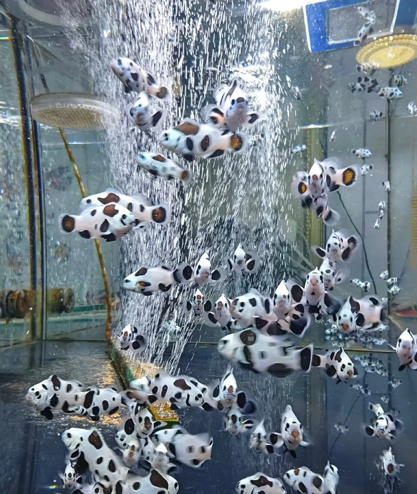 The Panda Clownfish (Amphiprion ocellaris “Panda”) is a selectively bred designer morph of the common clownfish, prized for its striking black-and-white coloration. Unlike the standard orange ocellaris, the Panda variant displays bold black bodies with irregular white markings that resemble the appearance of a panda, making it highly sought after in the marine aquarium trade. Hardy, peaceful, and reef-safe, it is an excellent choice for both beginners and advanced aquarists seeking something unique for their reef tanks.